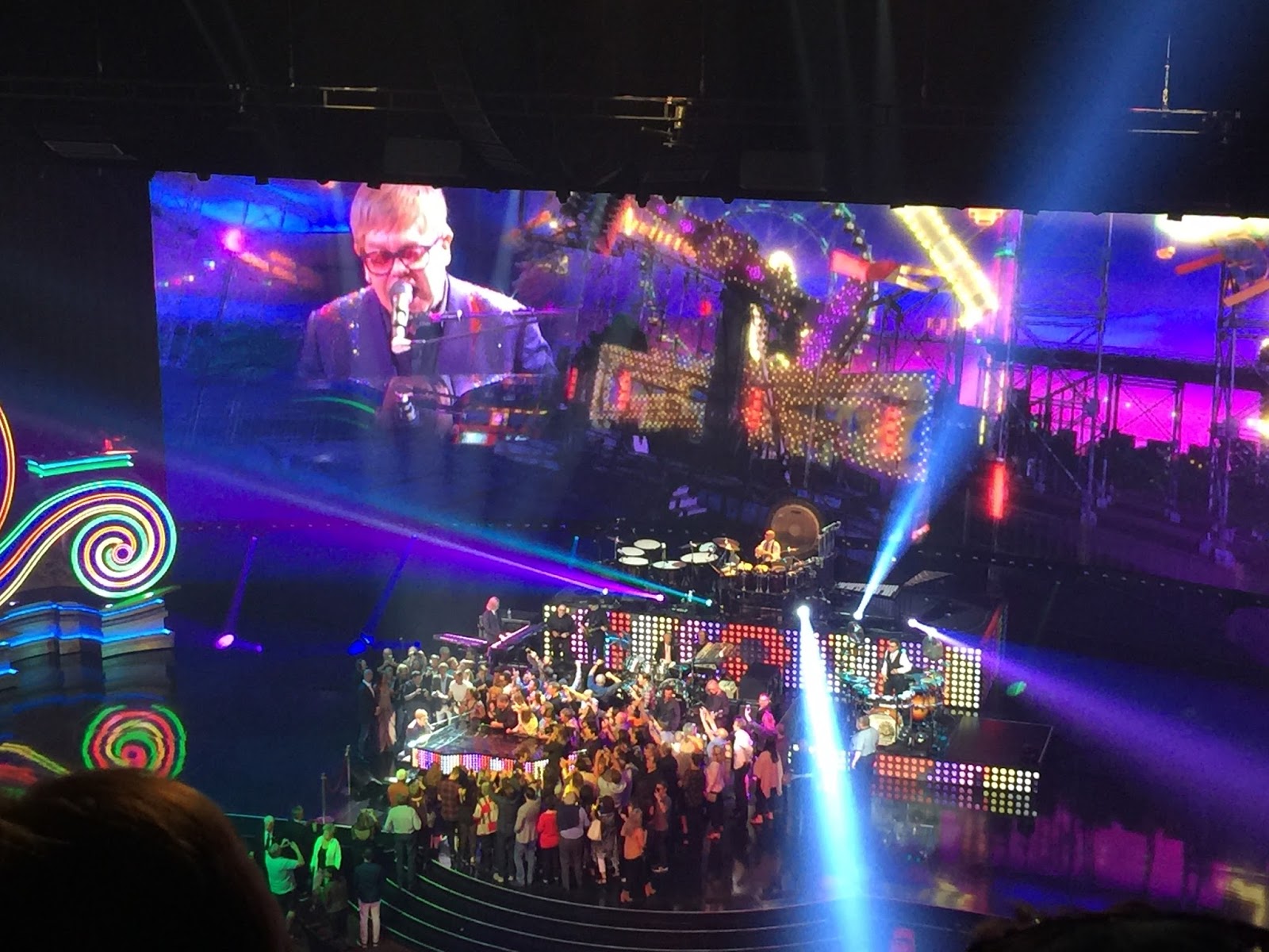 stage effects and were brilliant, mostly achieved through clever lighting.  Even though Elton had a croaky throat (which I am sure he sent to me.).it was an amazing concert.