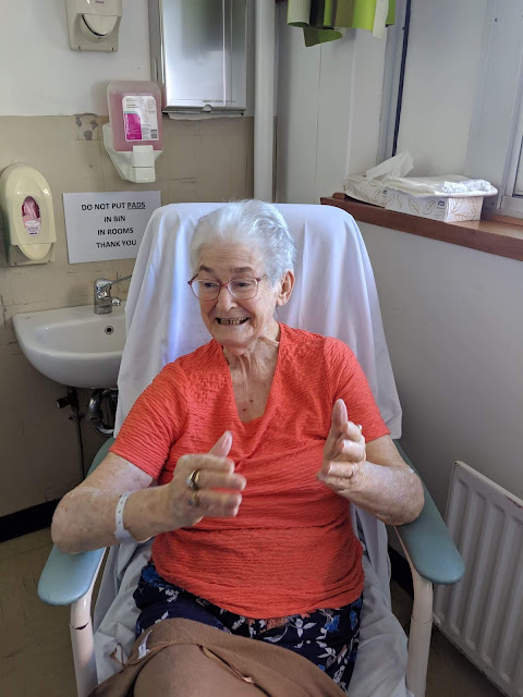 I have recently got a new sewing space and I am still fiddling and moving things around as I do. This quilt has pride of place now. My friend Denice ( Denice's Day) from Michigan hand made this for me and I am so appreciative to have it. Every day I hope to have one more opportunity to meet up with her . Until then I just have to be content with blogging , email